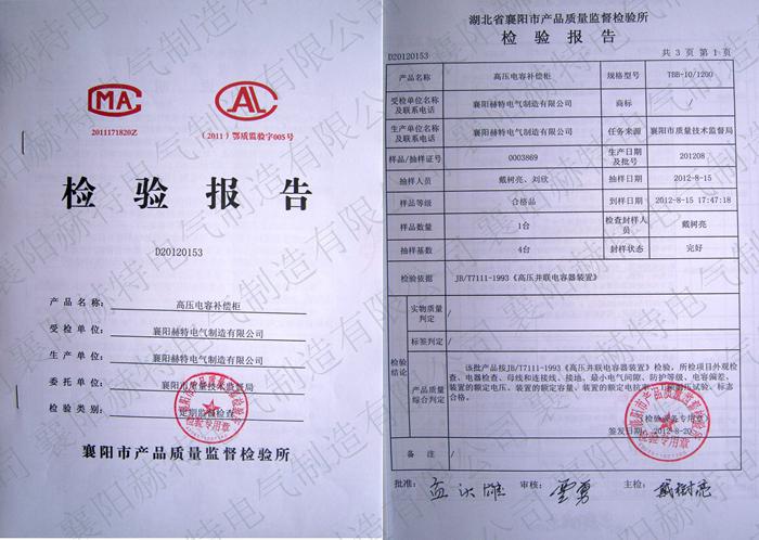 襄陽赫特電氣制造有限公司-TBB高壓并聯(lián)無功功率補償裝置檢驗報告高清大圖: